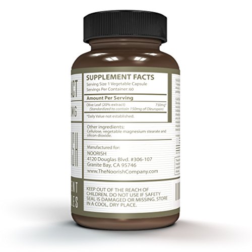 -. Title : Olive Leaf Extract Capsules (NON-GMO) Super Strength: 20% Oleuropein - 750mg - Immune Support and Antioxidant Supplement