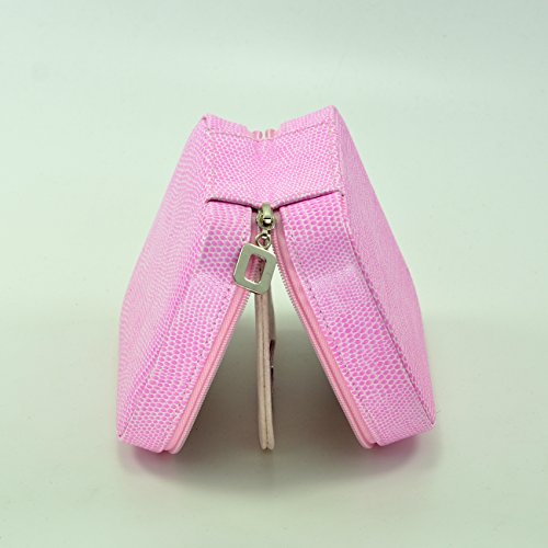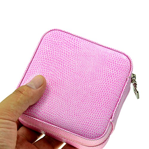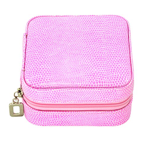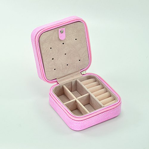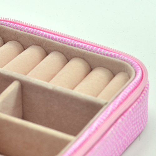 PU Leather Crocodile Grain Zip Closure Jewelry Box 3 Layers Multi- Function, Pink Color