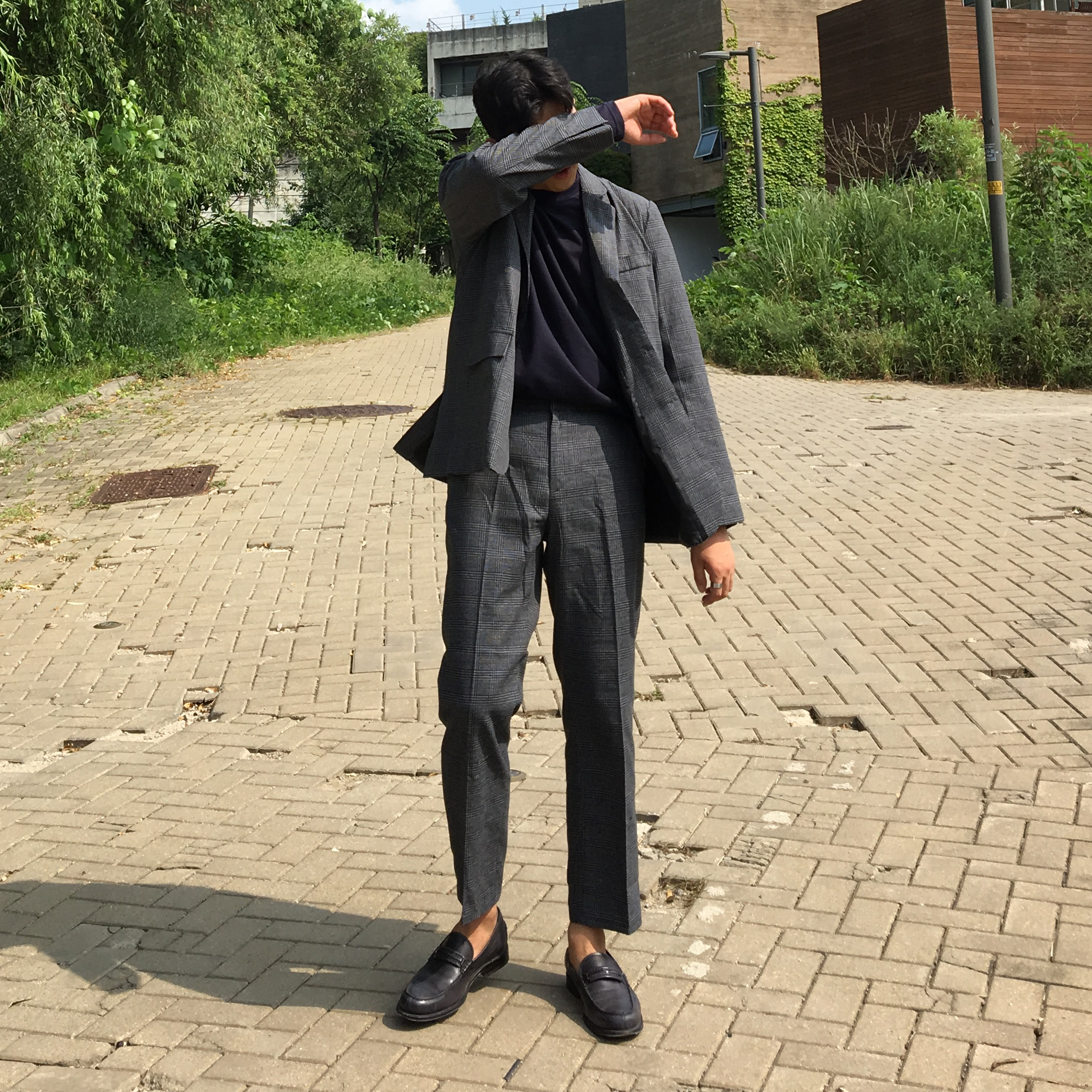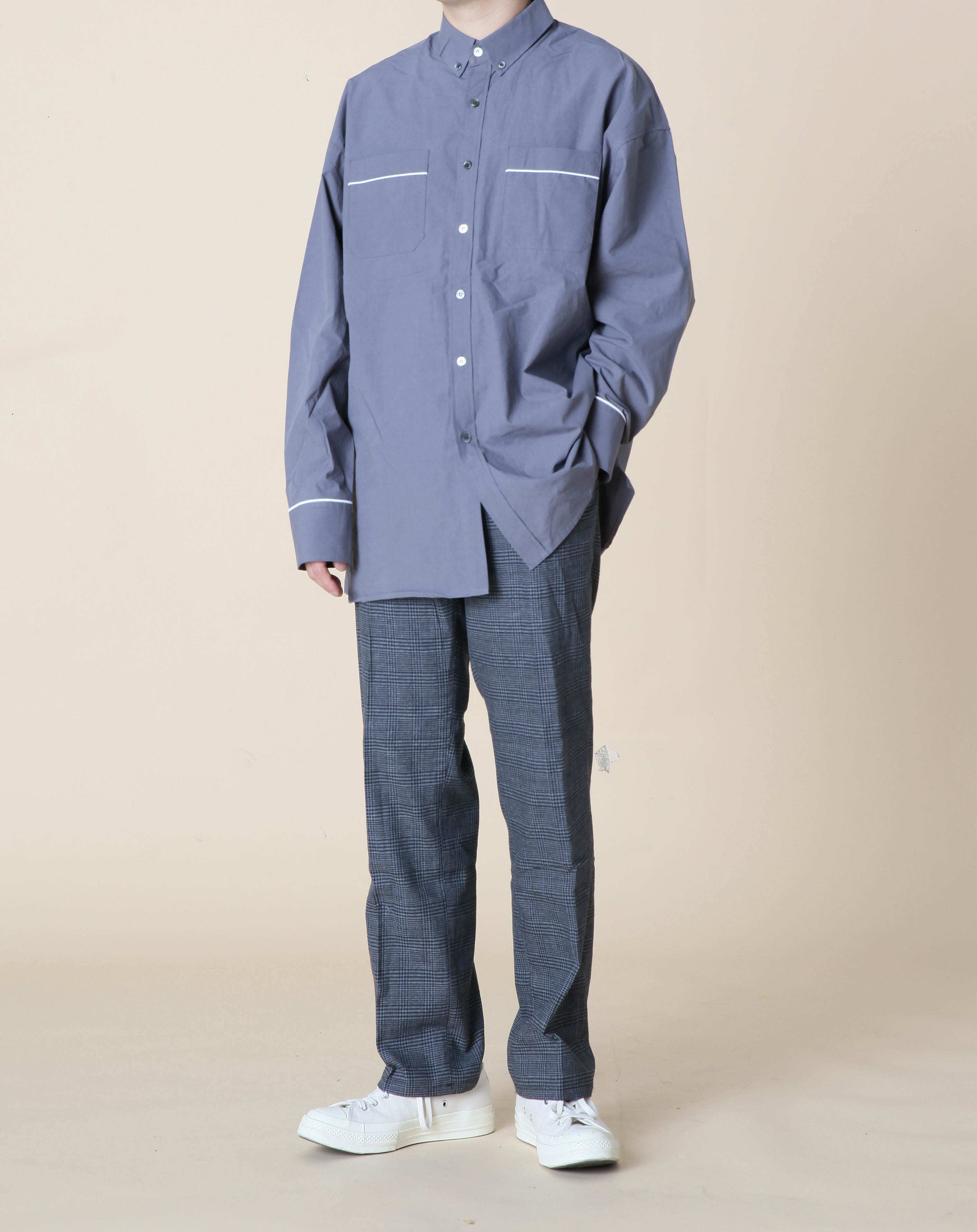Check Set Pants Gray, Beige Autumn Business Casual Daily Coordinate Items Lovely mood