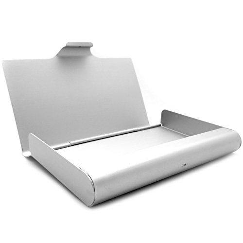 Aluminium metal name card dispenser with easier access than card book sleeves and pages. Protective barrier ensures business cards stay within the case for maximum protection and completely clean and un-wrinkled cards.