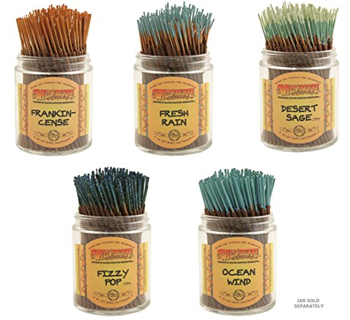 Wildberry Short Incense Sticks - Set of 5 Best Selling - Desert Sage, Fizzy Pop, Frankincense, Fresh Rain, Ocean Wind (Pack of 100 Each, Total 500 Sticks)