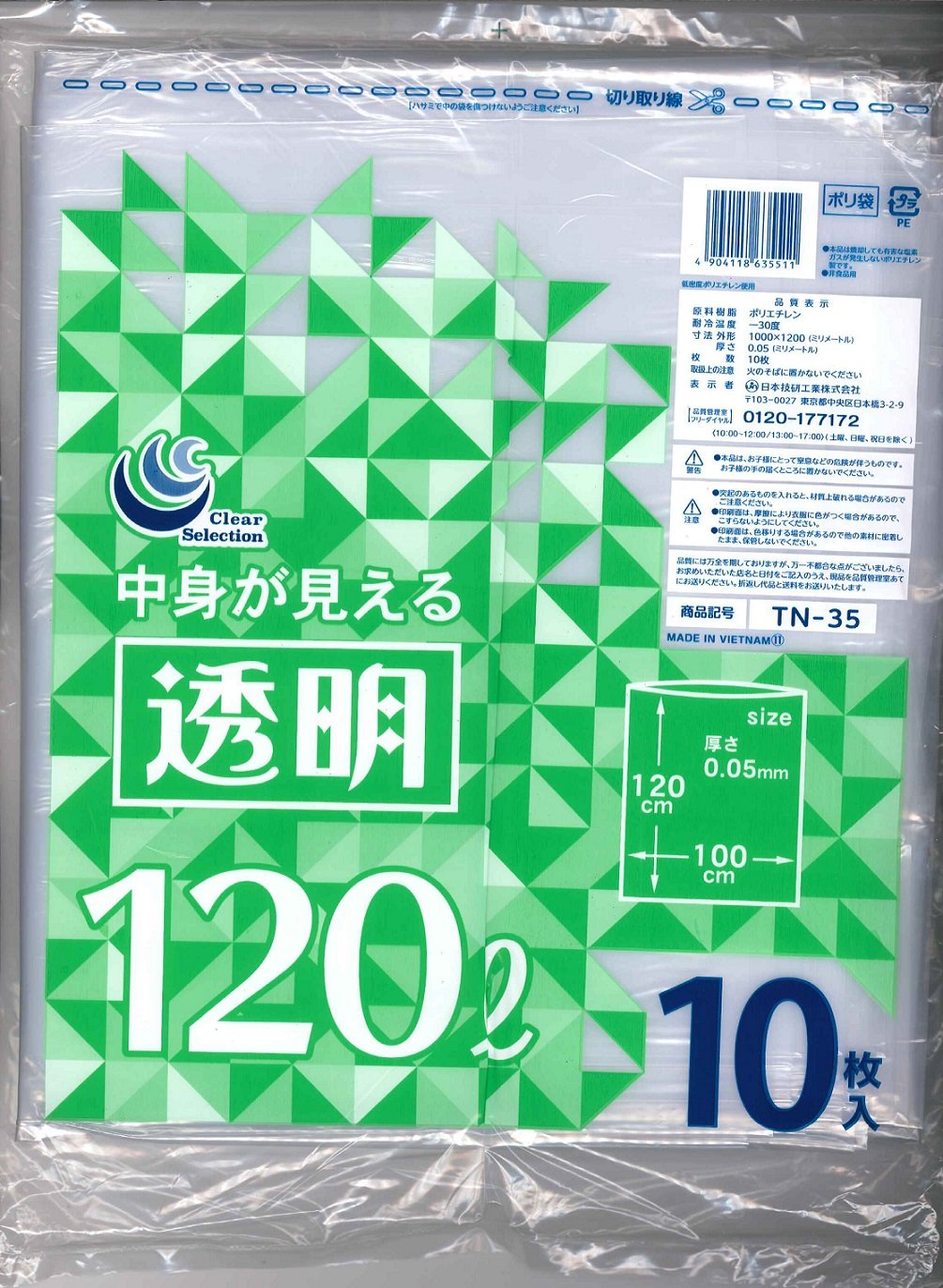 ポリ袋1枚の寸法:100㎝×120㎝、厚み0.05㎜