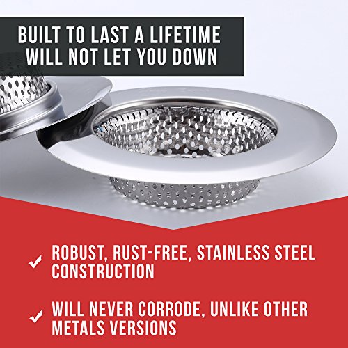 Latest 2-Pack Sink Strainer - Lifetime Replacement Warranty – Prevent Clogged Drains With The Best Stainless Steel Basket For Your Kitchen, Bathroom, Shower & Utility Room Items - Catches Everything
