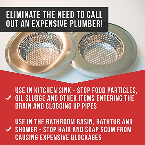 - ESSENTIAL MULTIFUNCTIONAL SINK STRAINERS – Use in kitchen to stop food from clogging up drains. Use in bathroom basin, bathtub and shower to stop hair and soap scum from entering drains and causing a blockage.