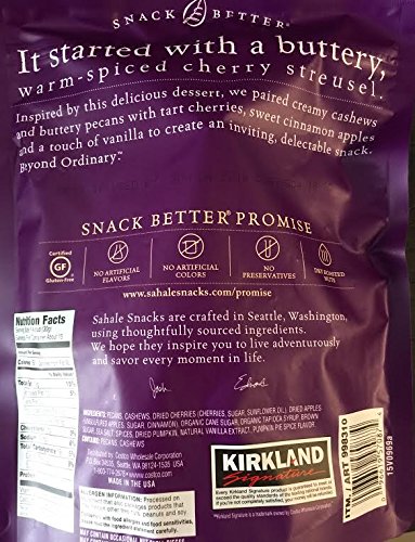- Title : Kirkland Signature Sahale Snacks, Pecan Cashew Nut Crisp with Cherries & Cinnamon Aples, one 16 oz