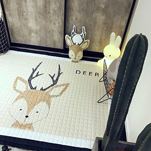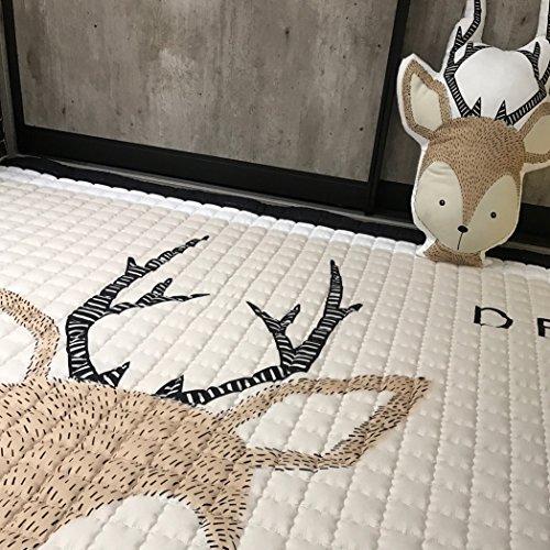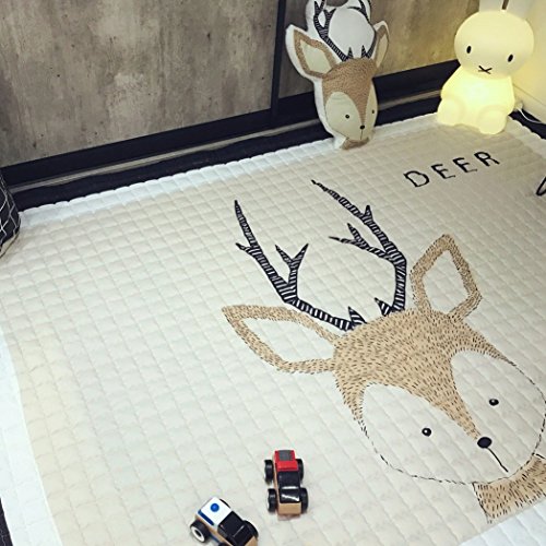 Description Soft floor surface for babies and children to play, especially for you who live in hardwood floors house, perfect for reducing noise and impact, and a great insulator on all floor surfaces. Ideal for encouraging crawling, rolling, sitting up, and learning to walk. The cushioned surface ensures a soft landing for rolling, tumbling, and falls. Also it's comfy for you to lay on and play with your children. We provided 6 styles with different animal pattern, bear, rabbit, deer, giraffe, fox, elephant, they are cute and lovely. Very useful accessory to brighten up your beloved little ones' look, also as a gift. Material:Natural cotton, hygienic and safe. Package Includes 1x Play Mat (Toy NOT INCLUDED) Note, Actual color may vary from the color on your screen due to monitor color restrictions. Size Information :76 x 58 x 0.6 inch =190 x 145 x 1.5 cm Easy Care Suggest wash before first use. Machine wash with cold water; Do not bleach; Tumble dry, low heat; Do not dry-clean. Fade Resistant, anti-wrinkle and difficult deformation. After-sales Service 100% satisfaction, if you have any question please feel free to send message to our customer service, our team will provide professional solution to you in 24 hours. 0
