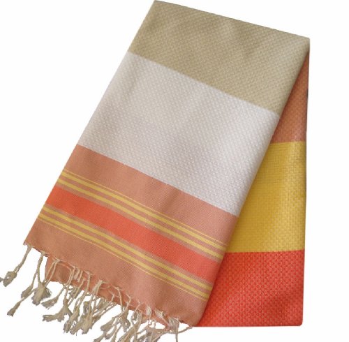 Scents and Feel 100-Percent Cotton Multicolor Pareo Fouta Towel in Honey Comb Weave, Yellow/Salmon/Taupe