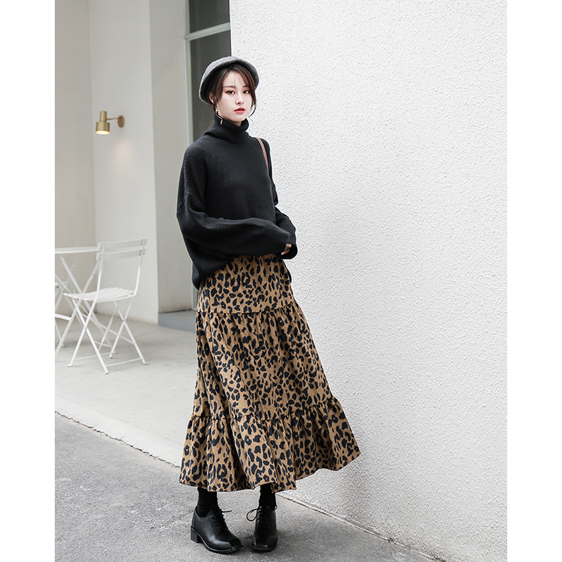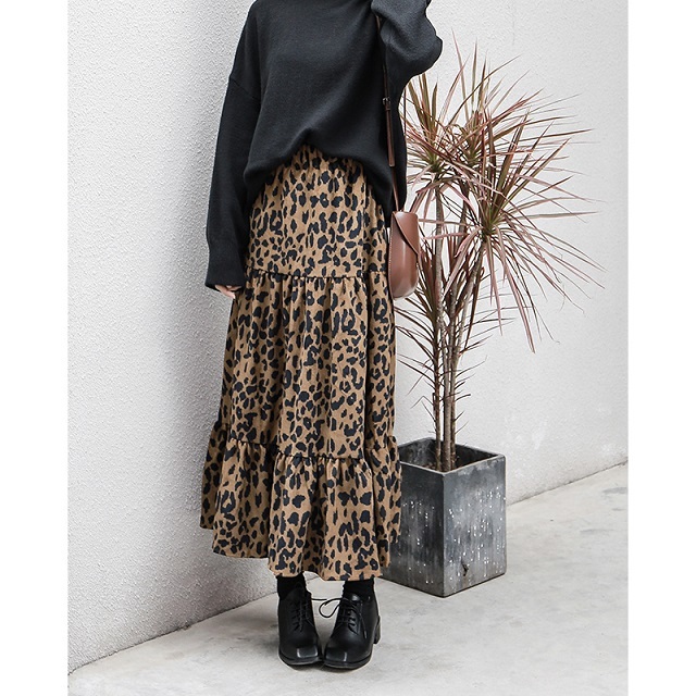 この秋冬大注目のヒョウ柄を、ロングスカートで大人っぽく取り入れた素敵なデザイン◎