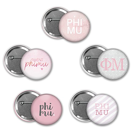 Binding : Apparel Product Description Our fun filled Phi Mu sorority buttons set of 5 include all the must have, sorority sugar for your life. Made with lots of love, these 1-3/4inch round buttons are made with mylar shells and pinned backs! Show your sorority pride by pinning these on your back pack, tote or other pencil bags. Use them for sorority swag, new member gifts, or even for recruitment name tags! These Alpha Chi buttons make a perfect addition to any bid day bag or gift basket for your little. Note: Due to color variations on monitors actual product colors may vary slightly. 0