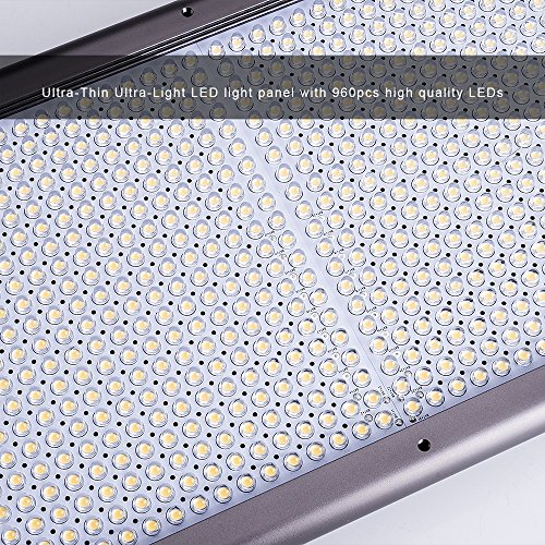 1.超薄型超軽量LEDライトパネル、アルミニウム合金に作られ、軽量でポータブルなデザイン、960pcs高品質のLEDを搭載、9800lux/ 0.5m、0.55 "/1.4cmの厚さと1562グラム/ 55オンスの重さで、持ち運びが便利でスタジオ撮影やアウトドア写真撮影に最適な光源を提供します。