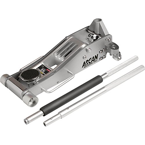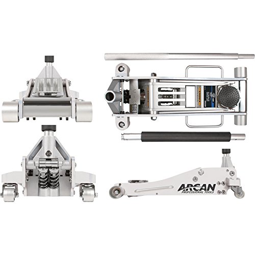 Arcan's professional-quality aluminum Floor Jack has a 3 ton lift capacity and a 3-3/4 inches minimum lift height for easy access under low-profile vehicles. The ball bearing-mounted rear swivel caster wheels and wide track front wheels provide easy maneuverability and jack stability under load and a saddle pad protects the vehicle's frame and components. Lift capacity is 3 tons, minimum lift height is 3-3/4 inches and maximum lift height is 18-1/8 inches. Dimensions are 31 inches length by 12-1/2 inches width by 7 inches height.Feature