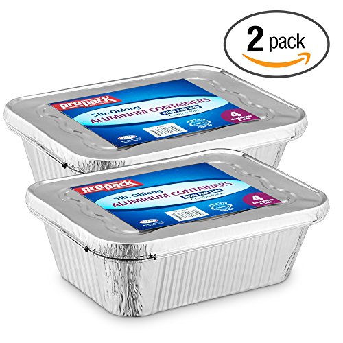 Great Deal for food packaging that is convenient; this affordable 8 piece set of 4 durable 5 Pound Capacity Oblong Aluminum Trays and 4 Flat Foil Lids by Propack is essential for leftovers, picnics, freezing, food gifting, and food service!