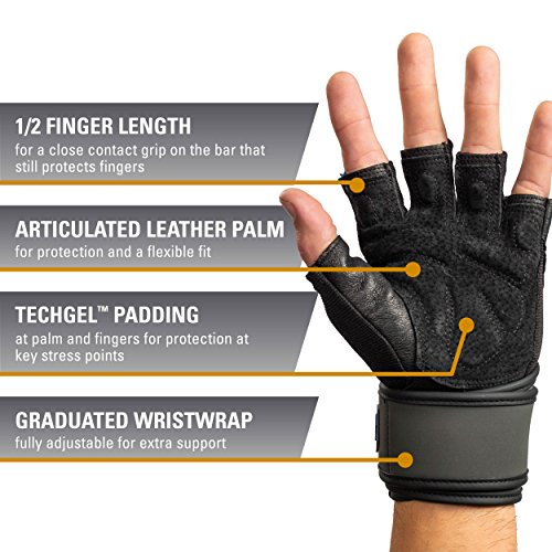 | Harbinger Training Grip WristWrap Tech Gel-Padded Leather Palm Weightlifting Gloves, Pair |