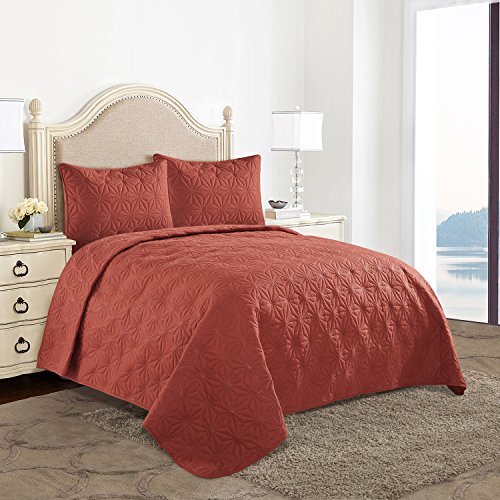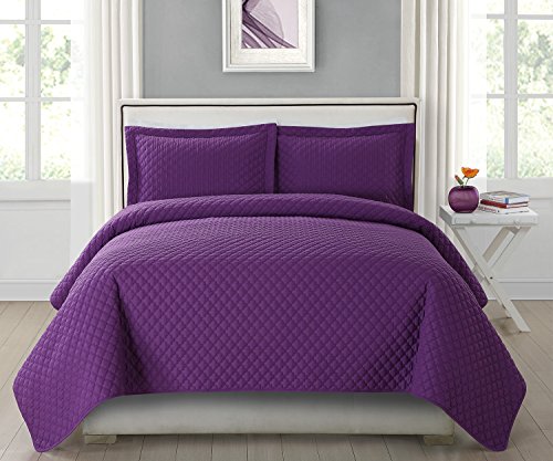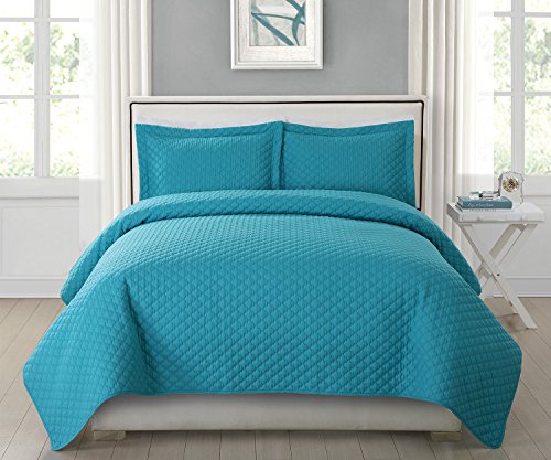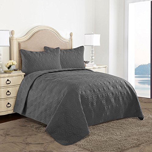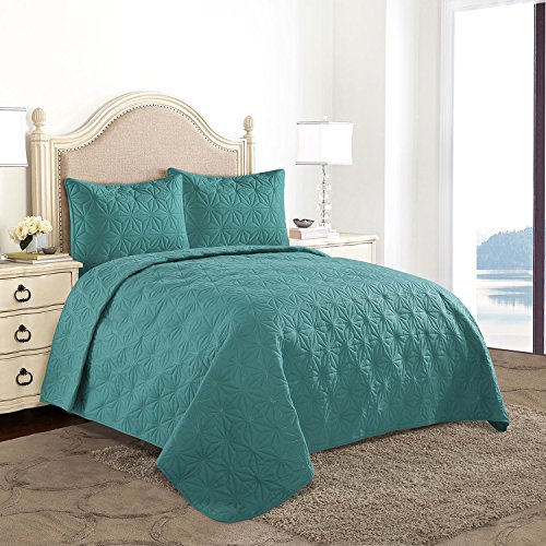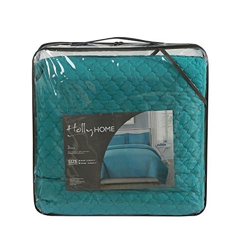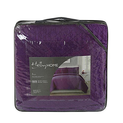 HollyHOME Collection 3 Pieces Luxury Super Soft Solid Pattern Embossed Bedding Quilt Set with 2 Pill
