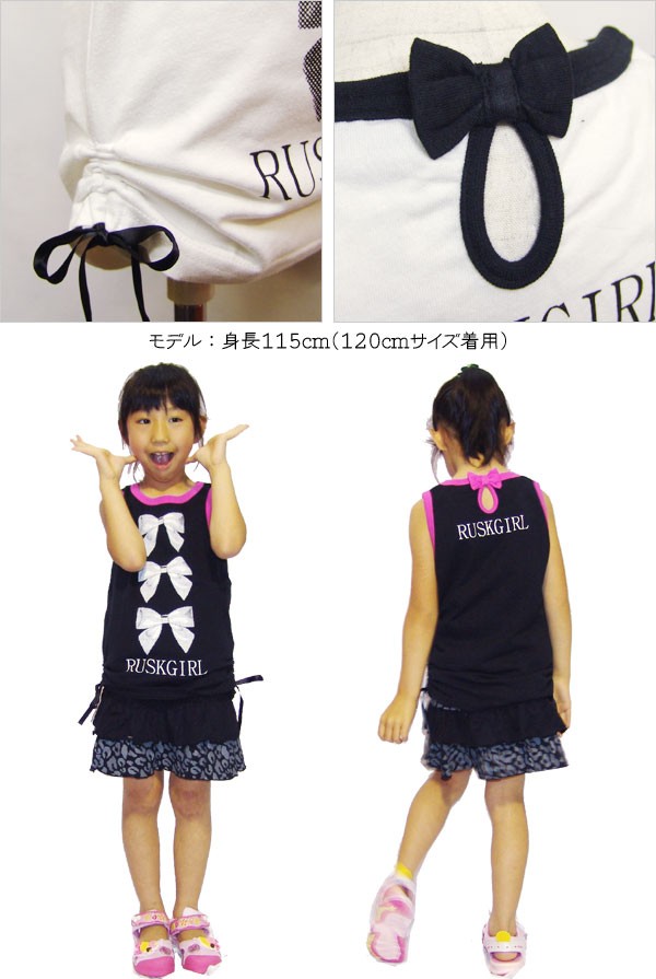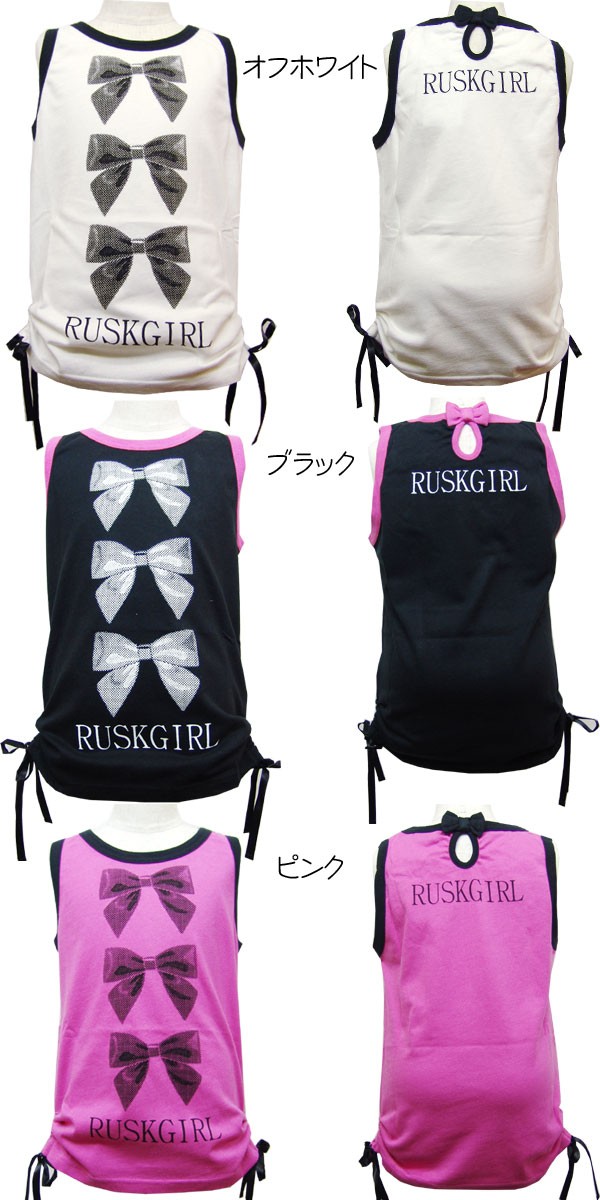 コメント かわいいリボンが3つもプリントされたタンクトップです。首の後ろが穴あきになっていてガール度がアップ♪