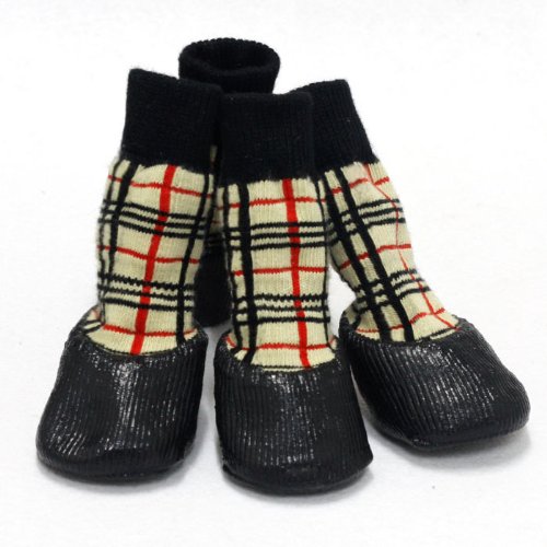 チェック柄 犬用ソックス 防水シューズ サイズM 犬用靴 4個セット ドッグウェア 防寒 肉球保護 包帯 サポータ替わり