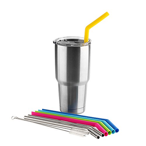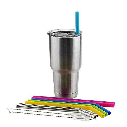 SILICONE STRAWS - GET THE BEST VALUE FOR MONEY: every time you purchase the Reusable Silicone Straws for 30 oz Tumbler Complete Bundle you will get 6 Big Silicone Straws+2 Stainless Steel Straws + 3 brushes. The Big Straws are flexible and resistant - if the opening of your tumbler lid is small, don't worry - squeeze the straw and use it. You can even give this set as a gift.