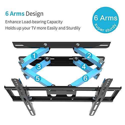 The Everstone articulating TV wall mount is a mounting solution for 23"- 65"This wall mount comes with 6 arms. it enhances the load-bearing capacity and holds up your precious flat screen TV more easily and sturdily. It can extend the VESA to 400x400 400x300 400x200 300x300 300x200 (16"x16"/16"x12"/16"x8"/12"x12"/12"x8"). Complete your living, bedroom, man cave, and more by mounting your television. It is not only convenient, but stylish too!
