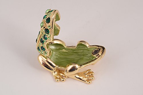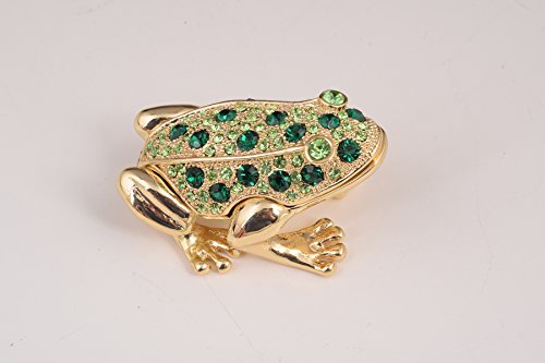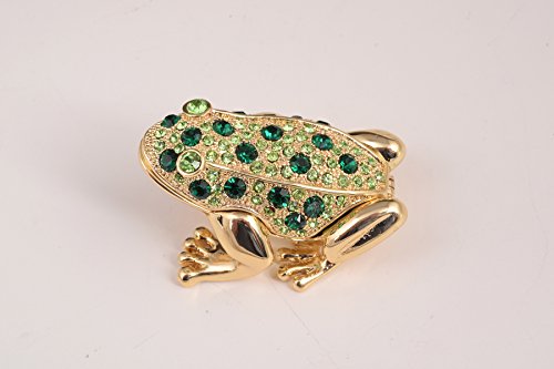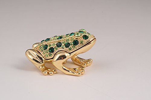 Gold Frog Trinket Box Decorated with Green Swarovski Crystals Easter Gift