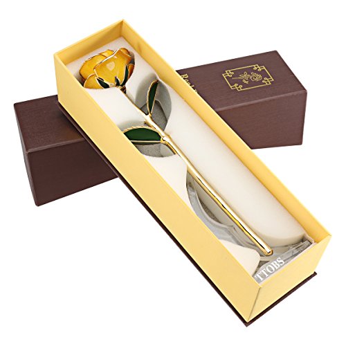 TTOBS Dipped 24K Gold Rose with Gift Box is Good Gift on Valentine's Day Mother's Day Lover's Birthday Anniversary (Yellow)