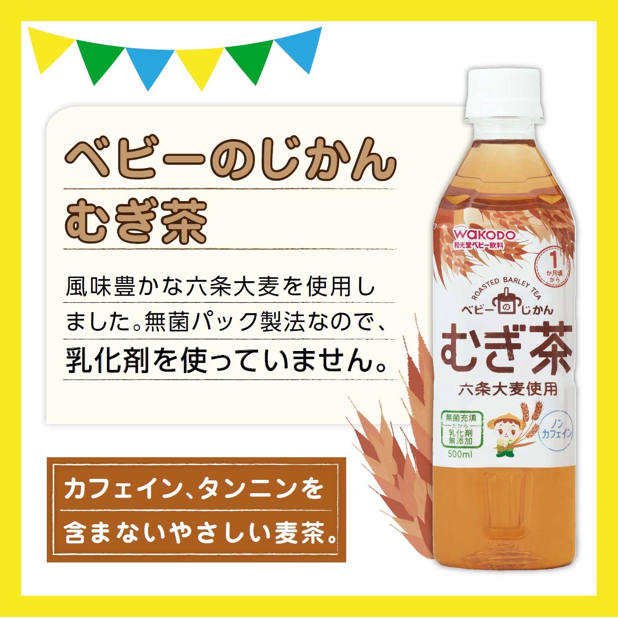 カフェイン、タンニンを含まず、赤ちゃんにやさしい麦茶です。