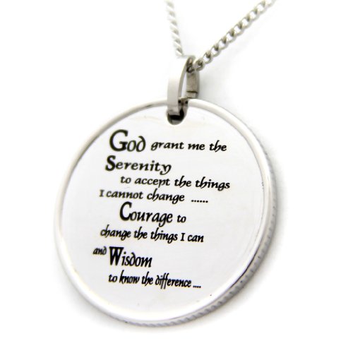 -. Title : Double Sided Serenity Prayer Coin Pendant Necklace - Stainless Steel Necklace - 12 Step Recovery Gifts