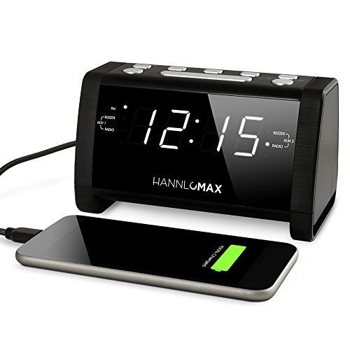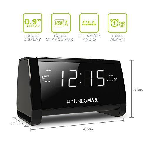 (Hannlomax)/Furniture Decor/Home Decor/DIRECT FROM USA/Hannlomax HX-101 Dual Alarm Clock Radio, 0.9" White LED Display, USB port for Charging, Aux-in,...