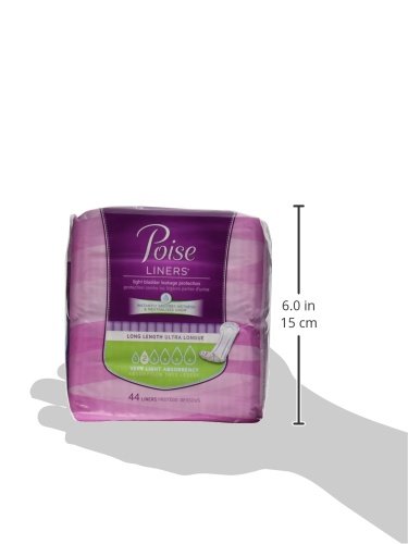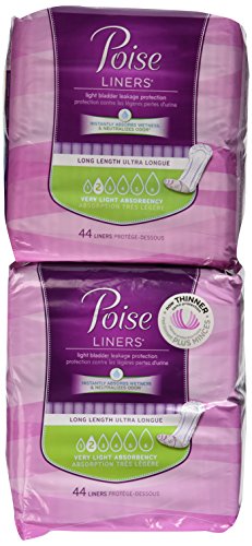 Poise Liners for Light Bladder Leakage, Long Length, Very Light Absorbency, 44 Count (Pack of 2)
