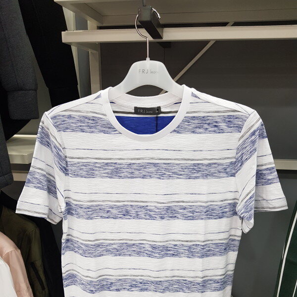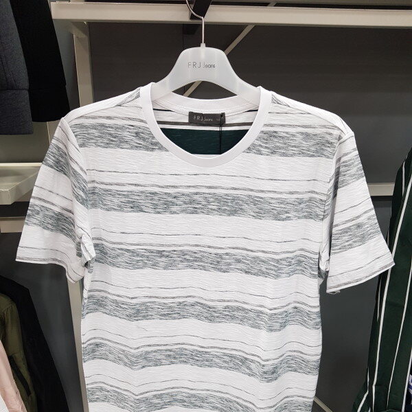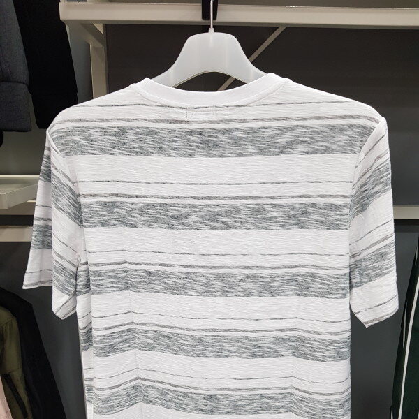 시원한 소재에 스트라이프가 들어간 티셔츠입니다얇지만 안에있는 스트라이프 프린트가 비치지않게 막아줍니다