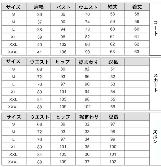 ■タイプ:タイプA(コート+ズボン) タイプB(コート+スカート)