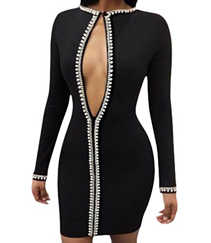 -. Title : Tootess 婦人用固体色のセクシーな開胸ロングスリーブドレス