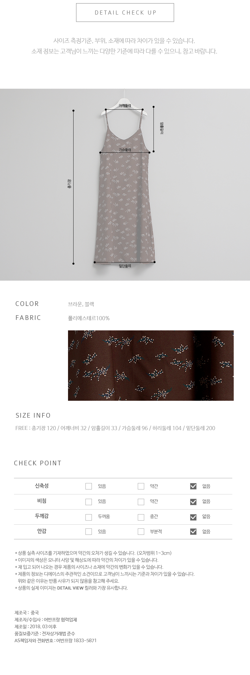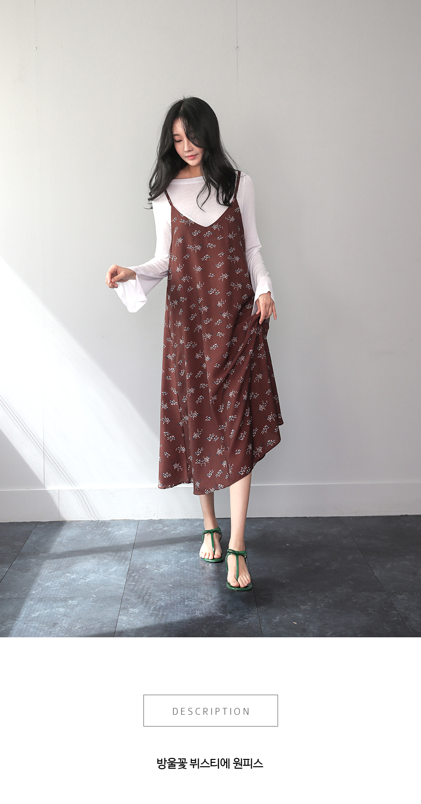 루즈한 핏의 넓게 퍼지는 플레어 뷔스티에 원피스에요 하늘하늘 날리는 폴리소재로 잔잔한 꽃패턴이 여성스러운 디자인과 잘 어우러진답니다 깊은 암홀과 여유있는 핏으로 다양한 이너와 함께 편하게 툭 걸치기 좋은 원피스에요 색상은 브라운, 블랙 사이즈는 FREE 44~77 ▼ 관련상품 : 얼그레이 보트넥 티셔츠