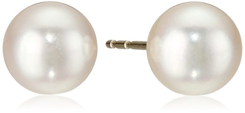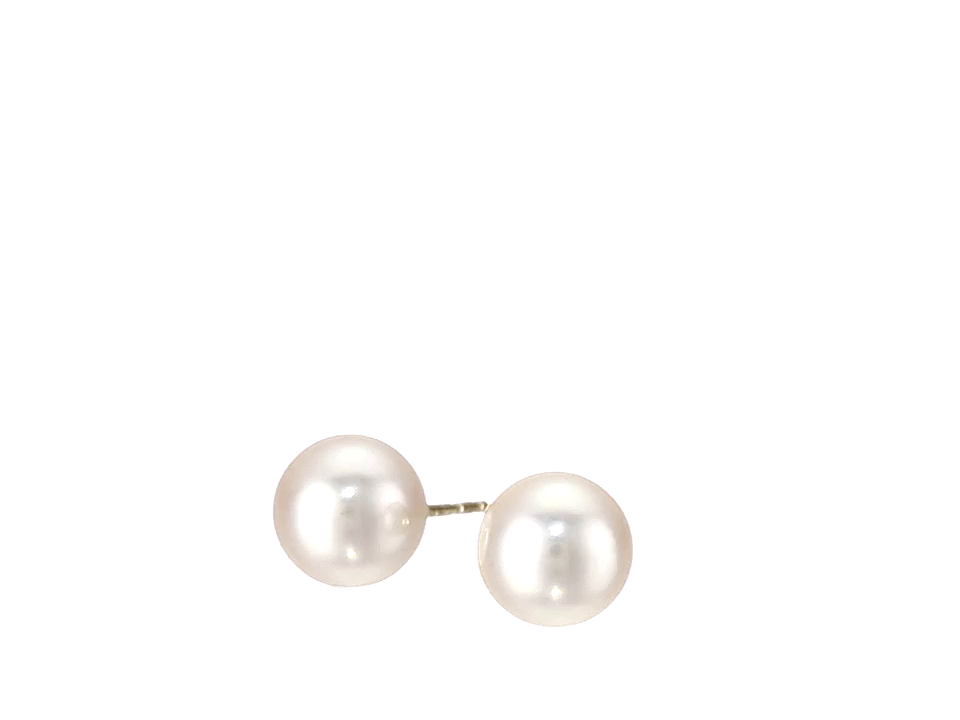 14k Gold Round Akoya Cultured Pearl AA Quality Stud Earrings