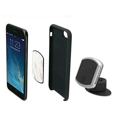 Magic Mount PRO DASH is a multi award-winning, innovative magnetic mounting system, which adds more powerful magnets with optional colorful trim rings. This magnetic mounting system conveniently mounts smartphones, tablets and other mobile devices to a wide array of surfaces. Just hover your device near the magnetic surface and it instantly locks securely in place. The sleek cradle-free design works perfectly with larger devices and allows you to position your screen horizontal, vertical, angled or circular for optimal viewing. Being able to angle your smartphone just how you want it is easy. With a 360 Degree swivel mount and soft rubber locking nut, adjust your Magic Mount precisely to the angle of display that works best for you to view. Whether on your car dashboard, work desk or nightstand, get the perfect position.Feature