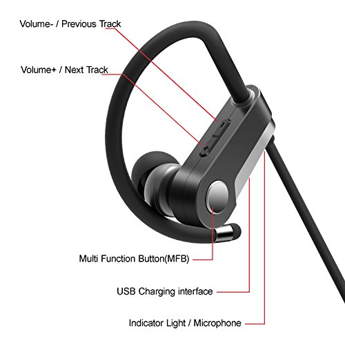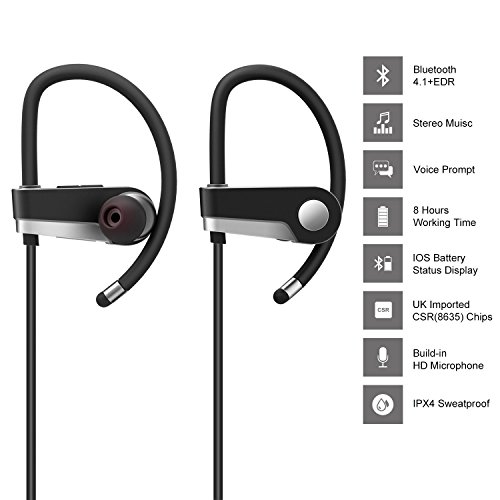 -. Feature : SUPERIOR SOUND: Premium sound with deep bass and crystal clear treble. True HD High Fidelity Stereo sound enjoy CD-like top sound quality. Built-in HD Microphone offers great phones conversation. / Hi-FI QUALITY: The most advanced Bluetooth 4.1 chips ensure Hi-Fi CD quality stereo music sound and strong signal. leading apt-X tech can provide no-lag voice when listening to music or calling with mic. / Ergonomic design to fit your ears securely and won't cause any discomfort. Slim and soft in-ear design, you can barely feel the weight when wearing it. Whether you are running, jogging, on the beach or at the gym, this headphone will always have you covered. / LONGEST BATTERY LIFE & EASY TO USE - Up to 8 hours of play time and 250 hours stand-by with a quick charge of only 2 hours. The headphone battery status will be automatically displayed on the IOS Phone screen. Remote Control near your right ear. Voice Prompt function enables you to know using status right now. Support automatically reporting in-coming phone number, never miss a call. Support to connect two Bluetooth devices simultaneously and transfer calls between two mobile phones. / 12 MONTHS WARRANTY: 12 months warranty and 30 days unlimited return or exchange. Worry free for money back guaranteed. Friendly customer service and prompt support for every customer