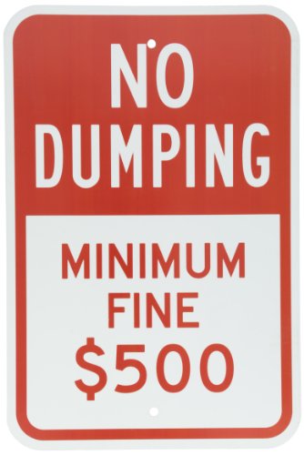 SmartSign Aluminum Sign, Legend "No Dumping Minimum Fine $ 500", 18" high x 12" wide, Red on White