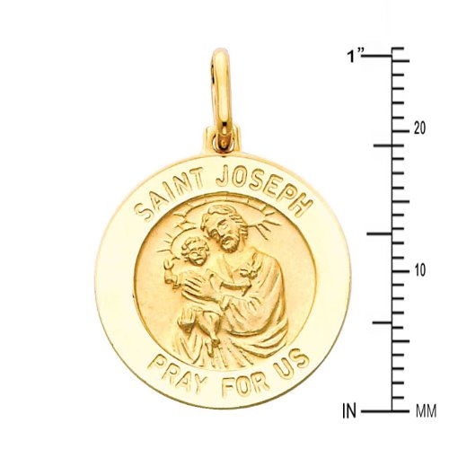 -. Binding : Jewelry -. Brand : The World Jewelry Center -. Department : womens -. Feature : Size : 18 mm x 18 mm / Guaranteed 14k Real Gold and "14k" Stamped / NO gold plated or filled / "NO Question Asked" 30-day Return Policy. / Promptly Packaged with Free Gift Box -. ProductGroup : Jewelry -. ProductTypeName : FASHIONNECKLACEBRACELETANKLET -. Title : 14k Yellow Gold Religious Saint Joseph Medal Charm Pendant - 2 Different Size Available