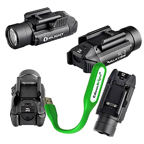 Olight PL-2 1200 lumen LED weapon/pistol light (PL2) for Glock and more with EdisonBright USB reading light bundle