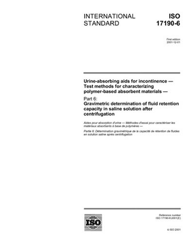 ISO 17190-6:2001, Urine-absorbing aids for incontinence - Test methods for characterizing polymer-based absorbent materials - Part 6: Gravimetric ... in saline solution after centrifugation