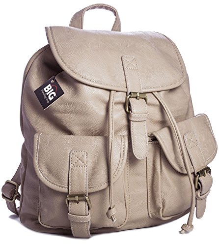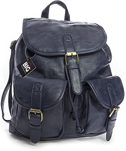 | Big Handbag Shop Unisex Vintage Faux Leather Backpack Rucksack Travel Casual Bag |