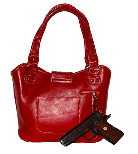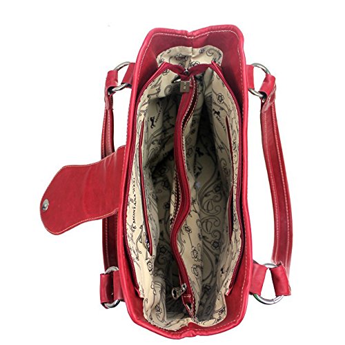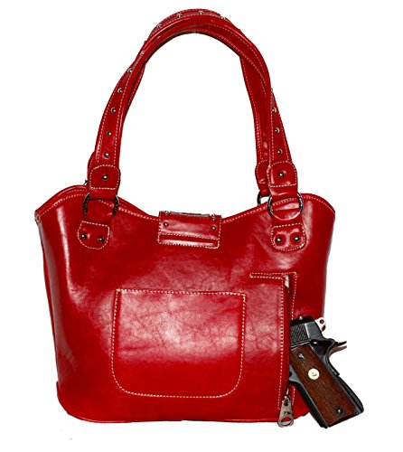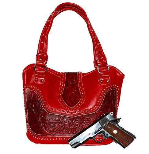 Montana West - Concealed Carry Purse - Tooled Genuine Leather - Red