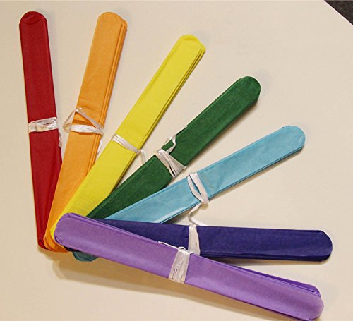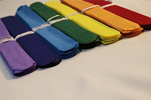 Seven colors perfect fro rainbow theme party.Each pom comes with one yard thin white ribbon for hanging. Ships flat, hanging string attached
