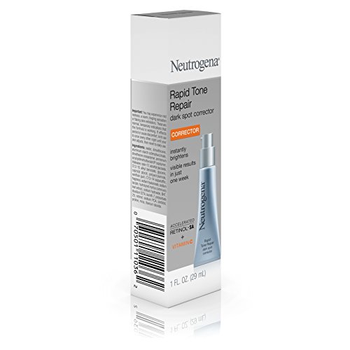 Use Neutrogena Rapid Tone Repair Dark Spot Corrector to help reveal younger-looking skin. This advanced corrector works to renew the look of skin, by helping to brighten skin tone. It helps improve the look of stubborn dark spots and discoloration, revealing noticeably more even, younger-looking skin in just one week. This dark spot corrector with Accelerated Retinol SA works to continuously renew the look of skin throughout the day. The formula also contains vitamin C that gently helps diminish the look of dark spots and discoloration for brighter, more even skin tone. Neutrogena Rapid Tone Repair Dark Spot Corrector is gentle enough for all skin tones.Feature