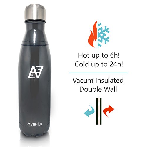 - VACUUM ISULATED: Avælite's water bottles are technologically designed with 2 walls which are then evacuated of much air in between them to create a vacuum that reduces temperature transferring. This "insulation" makes sure that your bottle stays cold inside without it sweating to the outside and hot without it burning your hand. No more wet stains on any desk and no more cold coffee before reaching half a cup.