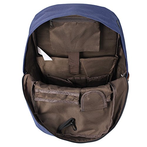 -. Feature : Approx Dimensions:11.8" L x 18" H x 5.5"D Capacity: 19L (medium capacity) / 2 x side pocket, 1 x outer zipper pocket, 1 x zipper pocket on top cover, 1x interior laptop/ tablet compartment ( fit 15 or 16 inch laptop) / Adjustable padded shoulder straps for carrying comfort, Convenient headset grommet for easy access to your MP3 player or phone. / Waterproof canvas nylon material protect your goods, not easy to wet, / Lightweight durable backpack bookbags for school college use or everyday outings such as travel , hiking , camping, school bag, shopping, placing laptop, ipad etc