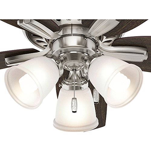 Through its casual style and charming appearance, the new some will compliment your decor without overpowering it. Clean line details work together throughout the fan body, blade irons and bowl light kit to create a coherent design with wide appeal. The 42-inch blades and low-profile motor housing make this fan a perfect fit for Small rooms or low ceilings. And remember, with the new some collection you have the freedom to choose from many different sizes, light kits and other options to maintain a consistent look throughout every room in your home.Feature