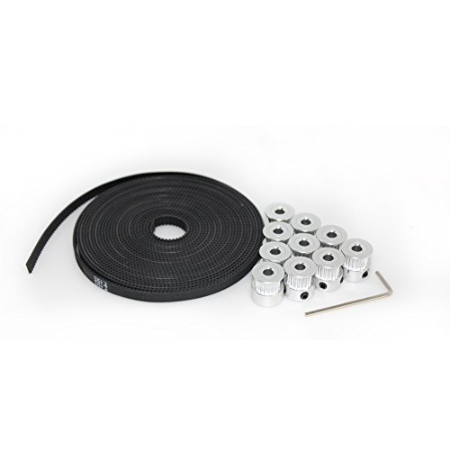 ARQQ 10pcs Aluminum GT2 Timing Pulley + 5Meter GT2 Timing Belt Width 6mm Open Loop Rubber Belt for CNC 3D Printer