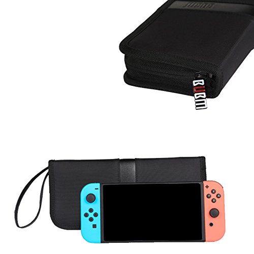 BUBM Nintendo Switch Console Carrying Case Protective Storage Bag Travel Organizer Case with 14 Game Cards Holders-Black