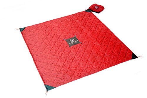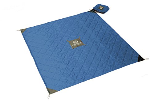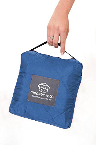 QUILTED MONKEY MAT Portable Indoor/Outdoor 5'x5' Cushioned, Waterproof Blanket with Corner Weights in Compact Pouch for Beach, Picnic, Baby, Camping, Concert (Blue)