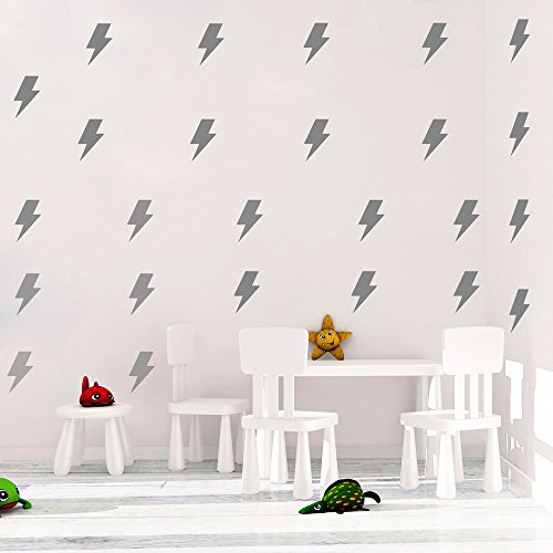 DCTOP Wall Decals Wall Stickers Removable Home Decoration Easy to Peel Stick Painted Walls Metallic Vinyl Polka Wall Decor Sticker for Baby Kids Nursery Bedroom (Silver Lightnings)